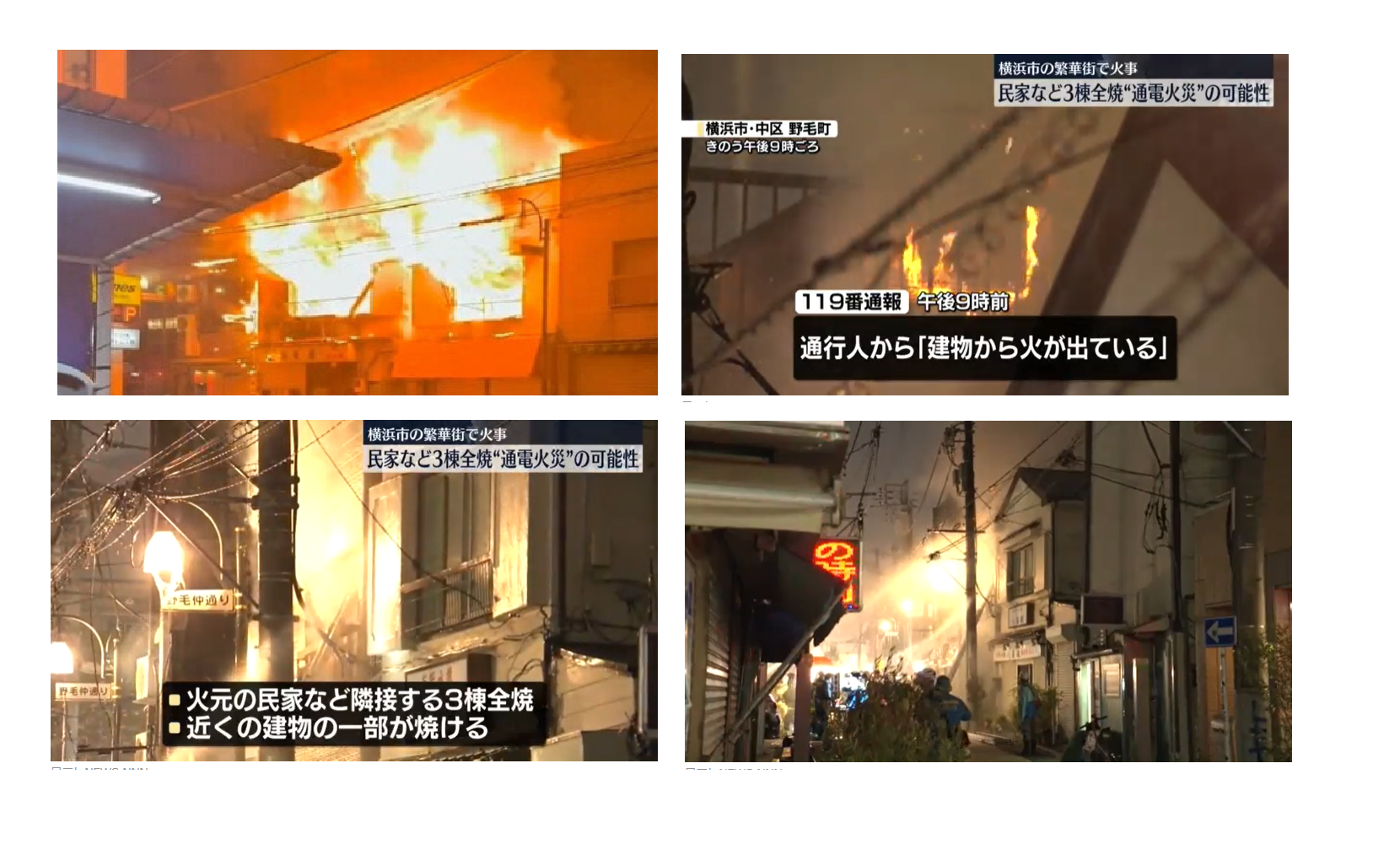 【横浜・野毛町で大規模火災 飲食店跡を含む3棟が全焼 通電火災か!?】
